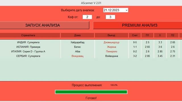 Программа Прогнозы на спорт. Футбольный анализатор