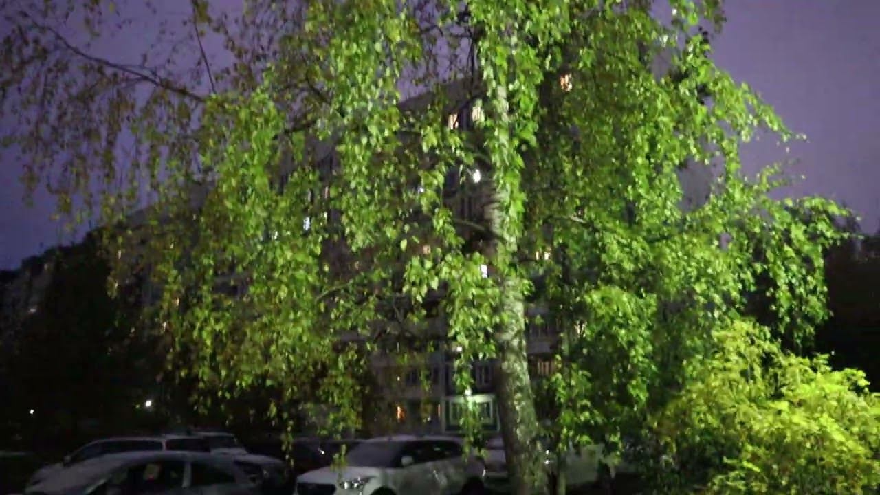 Снег падает и стучит по не облетевшим кронам осенних деревьев деревьев. Воскресенье, 29.10.2023 г