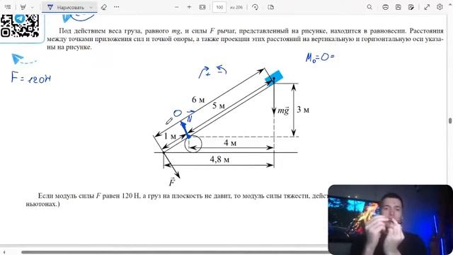 Под действием веса груза равного mg и силы F рычаг представленный на рисунке находится - 23145