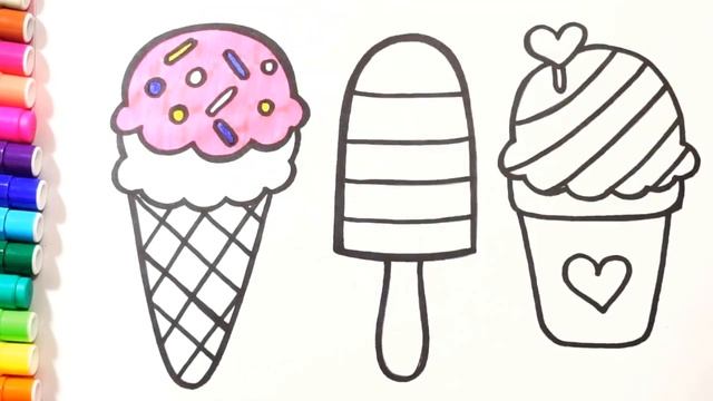 Dibujar y colorear para los niños helado de colores/Dibujo para niños
