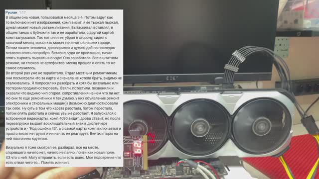 Мой WhatsApp 89095125352 ВК https://vk.com/sanches42 Телеграмм https://tlgg.ru/@sanches42r Группа https://t.me/sanches42rem Видеокарта отработала всего 3 месяца и перестала выдавать изображение. Висит на пост коде B2. Попробуем спасти бедолагу.