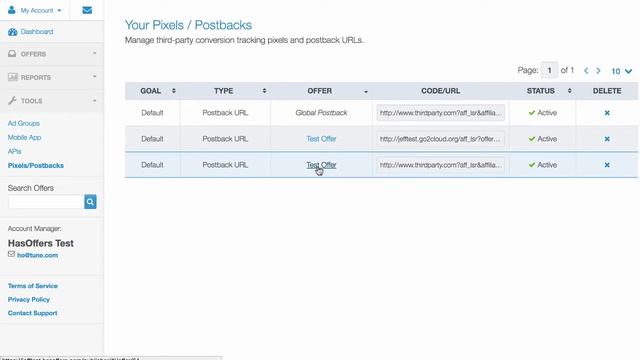 TUNE Partner Marketing Platform Partner Interface: Setting Up Postback URLs