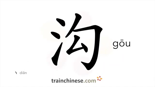 沟 (gōu) ditch; trench; gutter; fossa; gouge; chimb; kennel