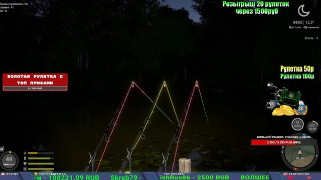 Поддержка донатом https://new.donatepay.ru/@1032463 Альтернативный донат https://www.donationalerts.com/r/kalyamba11 5536913964533059 карта Тинькоф Если стрим лагает,смотри стрим на трово https://trovo.live/s/Kalyamba_na_Ribalke Мой ВК - https://vk.com/kalyantv НИК в игре kalyan11 НАШ ДИСКОРД СЕРВЕР https://discord.gg/3ZeEDGs5h6 Заказ водоема на 1 час - 500р ( весь стрим 2500р ) Модерка на канале 1300р ( каждая следующая на 100р больше) ✅Призы в рулетке "ЗОЛОТАЯ" 500р ✔ ЗОЛОТО ✔ ПРЕМ ✔ КАТУШКИ РАПТОР 40, ВЕНГИ, ТАЙГА, СИЛЬВЕР 80, И другие ✔ ПАЛКИ ПИЛКЕРНАЯ, ДОНКА МОРСКИЕ, ✔ РОД ПОД, СТУЛЬЯ ✅Призы в рулетке СТАНДАРТ : 100р ✔ катушкИ РАПТОР 40, ВЕНГИ, ТАЙГА, СИЛЬВЕР 80, И другие ✔ катушки 60 для медного ( ЭВИИ, НАТОРЫ, ГОЛДА, и тд) ✔ ПИЛКЕРНОЕ УДИЛИЩЕ КОРОЛЕВА ОКЕАНА ✔ Морское Донное удилище ✔ прем ( 3, 7, 30 дней) ✔ золото ( 1, 3, 5, 10, 20 ,50) ✔ билет на море ( 1, 3, 5 дней) ✔ голд наживка и др. ✅Призы в рулетке "СТАРТОВАЯ" 50р ✔ катушка Венга ✔ катушка "silver80" ✔ катушка "БЕЛЫЙ КАЛИБР" ✔ катушка "Черный калибр" ✔ катушка "Протон" ✔ катушка "Нарга 6000" ✔ Набор Фидерист и спинингист ✔ Карповик Фортуна ✔ фидерные удилища ✔ прем, золото, алкашка, наживки и тд P.s Рулетка это не казино, а награда за поддержку стримера. Вечный ТОП ПОДДЕРЖКИ (10.06.2025) 1. Леха сварной 214 572 2. Dimon_pokemonchik 127 034 3. Skreb79 103 061 4. Interceptor 96 230 5. FishRus86 82 500