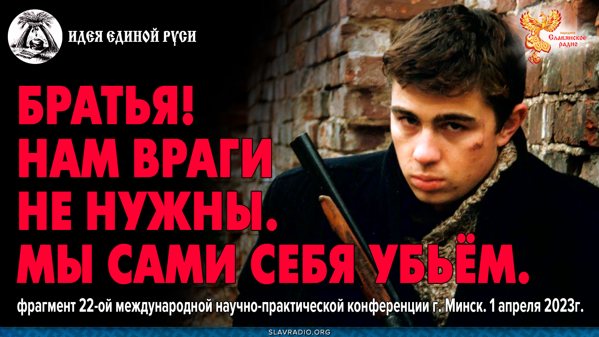 Фрагмент с 22-ой международной научно-практической конференции «Идея Единой Руси!». Город Минск, 01.03.2023г., 3-й день. Пленарные заседания: 1. Мировоззрение и истоки русско-славянского мира. 2. Культура, воля, здоровье. 3. Демографическая безопасность и идеология Грядущего Единого Отечества! Инициаторы конференции: Белорусское отделение Международной Славянской академии; Белорусское общественное объединение «Русь»; Международный союз общественных объединений «Всеславянский союз»; Международная Славянская академия; Российское Космическое общество; Представительство Исполкома славянских народов в Республике Беларусь; Республиканское творческое молодёжное общественное объединение "Продвижение молодёжи". Цели конференции: стратегия и развитие концепции возрождения Жизнеутверждающего Лада и общественной безопасности коренных народов русско-славянского мира на базе традиционного мировоззрения и современной науки. БЕЛОРУССКОЕ ОТДЕЛЕНИЕ МЕЖДУНАРОДНОЙ СЛАВЯНСКОЙ АКАДЕМИИ МЕЖДУНАРОДНАЯ СЛАВЯНСКАЯ АКАДЕМИЯ МЕЖДУНАРОДНЫЙ ВСЕСЛАВЯНСКИЙ КОМИТЕТ РУССКОЕ КОСМИЧЕСКОЕ ОБЩЕСТВО ПРЕДСТАВИТЕЛЬСТВО ИСПОЛКОМА СОВЕТА СЛАВЯНСКИХ НАРОДОВ В РЕСПУБЛИКЕ БЕЛАРУСЬ ТЕМАТИКА 22–й МЕЖДУНАРОДНОЙ НАУЧНО-ПРАКТИЧЕСКОЙ КОНФЕРЕНЦИИ: «ИДЕЯ ЕДИНОЙ РУСИ» г. Минск Древняя Русь — исток государственности Русского мира; Безопасность Единого Отечества; Уточнение названия Республика Беларусь (БелаЯ Русь); Идея Белой Руси — как стратегия Народодержавия; Русь — ядро славянского мира; Философское осмысление идеалов и духовных ценностей Руси; Корни, традиции, верования, обычаи, символика, летописное русско-славянское наследие; Духовный суверенитет, как основной стержень Независимости; Моя малая родина, мой Род в истории моего Отечества; Русское Общее Дело (РОД), (социализм по-русски); Лад, как единство разума, воли, веры и чувства справедливости; Семья как национальное достояние Отечества и матрица Державы; Демографическая безопасность: роль мужского и женского начал; «Наука побеждать!» А.В. Суворова в социальной жизни современного общества; Трезвость, здравомыслие, самоуправление и самосознание народа; Раздельное и параллельное воспитание и образование; Воля человека и воля народа на пути преодоления духовного и культурного кризиса; СМИ — орудие манипулирования, правовая ответственность. КОНФЕРЕНЦИЯ ПРЕДЛАГАЕТ ТРИ ПЛЕНАРНЫХ ЗАСЕДАНИЯ: Мировоззрение и истоки русско-славянского мира; Культура, воля, здоровье. Безопасность и идеология Грядущего Единого Отечества! Регламент: доклады, выступления — 15 мин., сообщения — 10 мин. ПЛАН ПРОВЕДЕНИЯ КОНФЕРЕНЦИИ смотрите по ссылке https://rodveche.ru/node/787 Справки по телефону: факс: 8(10-375-1642) 549-11, Viber +375-29-52-33-795, +375-29-94-26-335 — Владимир Александрович, Наш сайт «Русско-славянское Вече»: http://rodveche.ru http://rodveche.ru/node/339 https://rodveche.ru/node/36 Быть ДОБРУ! ---------------------------------------- ПОДДЕРЖАТЬ РАДИО https://slavradio.org/page/charity/ ---------------------------------------- «Народное Славянское радио» – это просветительский проект, созданный для изучения родной культуры. У нас нет инвесторов и рекламы. Мы существуем исключительно на добровольном вкладе слушателей. Любая сумма - для нас помощь! ---------------------------------------- МЫ В ИНТЕРНЕТЕ: http://slavradio.org https://vk.com/slavradio_org https://ok.ru/slavradio https://t.me/SlavRadio_org https://zen.yandex.ru/slavradio_org https://bastyon.com/slavradio?ref=PNoR5LNLAZP3VGiNcK2wn4xxAFT6yQAMqj https://rutube.ru/channel/23938023/ ---------------------------------------