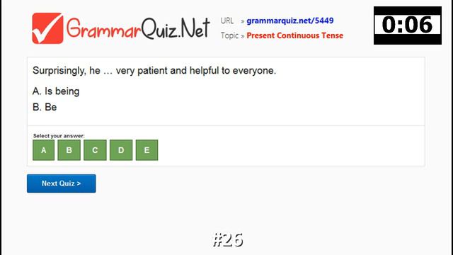 English Quiz #26 by: https://GrammarQuiz.Net - Grammar - Past Perfect Tense - Some/any/every/no + Body/thing/where - Present Continuous Tense