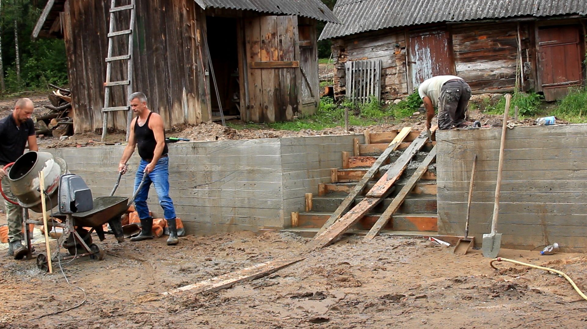 Работа между бурей и дождем. Подпорная стена готова. Потрясающее преображение двора.