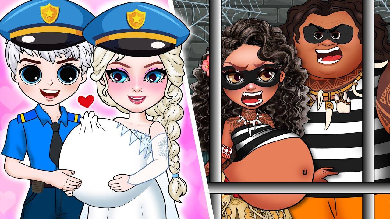 Семейная полиция Эльзы против семейной воровки Моаны, которая по-настоящему счастлива в игре "Сделай сам, бумажная кукла"