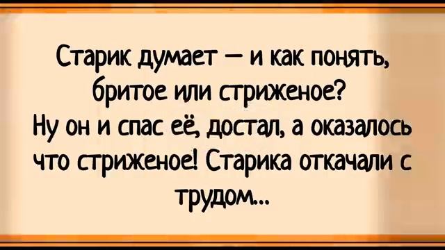 Как Мужик с Огромным Хозяйством к Нюре пришел! Сборник свежих анекдотов! Юмор! 00:00:09 Хозяин и куры • Хозяин убивает соседскую курицу, думая, что это поможет жене и семье. • Жена ругает его за неспособность отличить соседскую курицу от своей. 00:00:41 Муж и сапоги • Муж идёт домой босиком после покупки хромовых сапог. • Жена советует ему надеть сапоги, но он спотыкается и чуть не падает. • Муж сердится на жену за её совет. 00:01:10 Парень в магазине • Парень долго выбирает закуску к пиву, вызывая раздражение у очереди. • Он платит пятитысячной купюрой, вызывая недоумение продавца. 00:02:04 Подарок для жены • Муж покупает жене платье, которое ей не подходит по размеру. • Жена сердится, а муж объясняет, что хотел увидеть её стройной. 00:02:29 Поездка на бричке • Мать, сын и невестка едут на бричке, которую сильно трясёт. • Сын предлагает матери сесть на задок, а невестке — посередине. 00:02:48 Новое платье жены • Муж видит жену в новом платье и спрашивает, правда ли, что она тратит все деньги на наряды. • Жена отвечает, что он больше верит своим глазам, чем ей. 00:03:30 Старик и его жена • Старик решает бросить жену в реку, чтобы проверить, стриженая она или бритая. • Жена тонет и показывает средний палец, старик спасает её, но оказывается, что она стриженая. 00:04:09 Женщина в поезде • В поезде к мужчине подсаживается женщина, которая выпивает бутылку водки. • Мужчина спрашивает её имя, на что она отвечает, что сейчас закусит и сама залезет. 00:04:51 Помирились дед и бабка • Дед и бабка поссорились и решили не разговаривать друг с другом. • Бабка спрашивает деда, он ли чихнул, и они мирятся. 00:05:17 Свадьба и брак • Невеста одевается в белое в день свадьбы, а жених — в чёрное. • Мужчина сравнивает брак с поведением рыбы, которая то стремится в сети, то рвётся на свободу. 00:05:51 Муж в лесу • Муж едет в лес за дровами, а его жена греется с детьми. • Свекровь беспокоится о