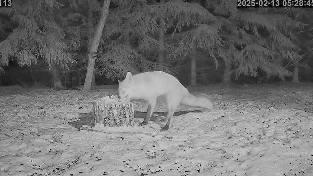 Лиса продолжила свой ранний завтрак у пенька- тренажора