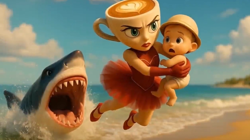 Балерина Капучино спасает младенца от акулы.