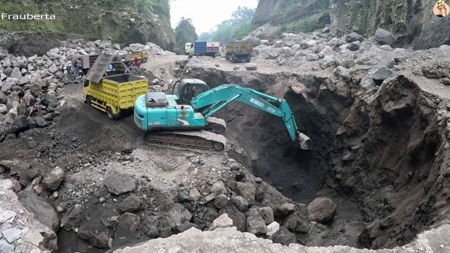 Строительство, экскаватор копает песок