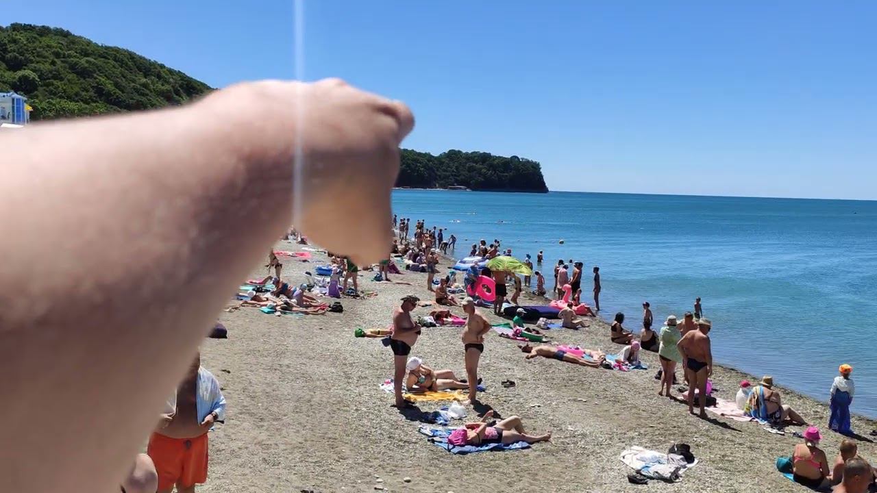 Центральный пляж, Новомихайловский, 21 июня, ветер и холодная вода 21°. Никто не купается.