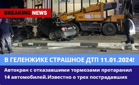 ?В Геленджике автокран с отказавшими тормозами протаранил 14 автомобилей.12.01.2024