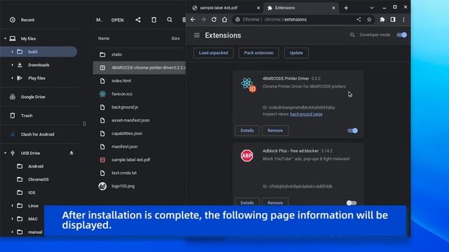 vretti ChromeOS USB driver installation and printing samples.