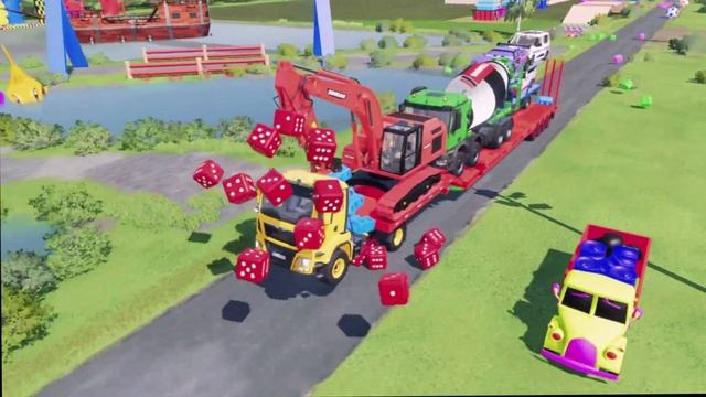 МУЛЬТФИЛЬМЫ ПРО МАШИНКИ. ПЕРЕВОЗКА ГРУЗОВИКОВ, ПОЖАРНЫХ МАШИН, ЭКСКАВАТОРА НА ДЕТСКОМ АВТОВОЗЕ.