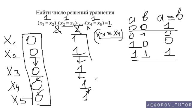 https://www.egoroffartem.ru/ege/task/23 На сайте размещены другие задания по этой теме https://www.egoroffartem.ru/ege/videotask/23 Список всех разборов 23 задания из ЕГЭ по информатике: https://www.egoroffartem.ru/ege/videotask/ Видео решения задач по ЕГЭ информатике https://vk.com/egoroff_channel В данном группе можете найти информацию о новых видео и задать вопросы по ЕГЭ Информатике Полная статья о решении 23 задания: https://vk.com/@aegorov_tutor-kak-spravitsya-s-23-zadaniem-iz-ege-po-informatike Видео № 1 по теме "Система логических уравнений" из 23 задания по ЕГЭ по информатике В данном видео рассматривается решение 2 логических уравнений: (x1 ≡ x2) ∧ (x2 ≡ x3) ∧ ... ∧ (x4 ≡ x5)=1 ¬(x1 ≡ x2) ∧ ¬(x2 ≡ x3) ∧ ... ∧ ¬(x4 ≡ x5)=1