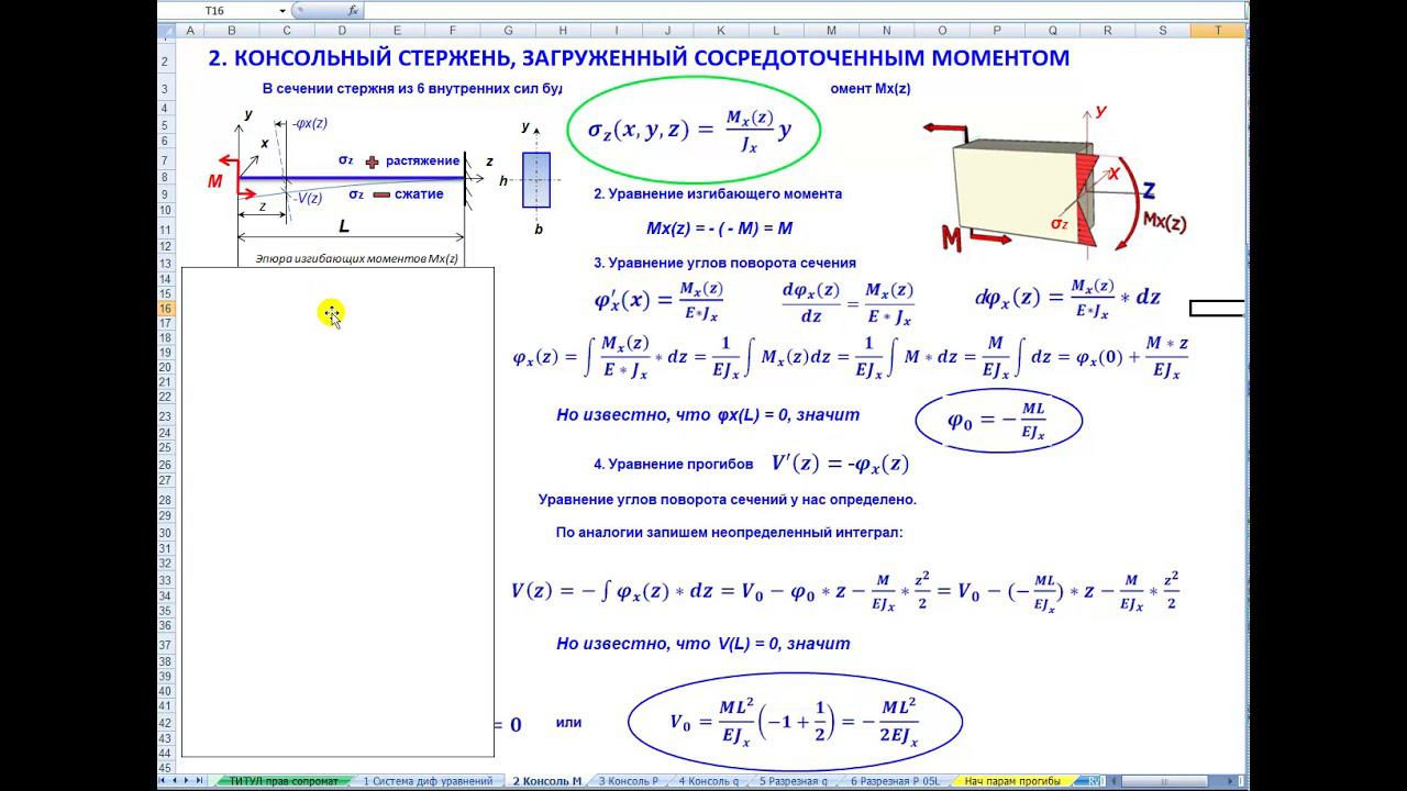 Консольный стержень, загруженный сосредоточенным моментом. ПРАВИЛЬНЫЙ СОПРОМАТ. Видео 2.