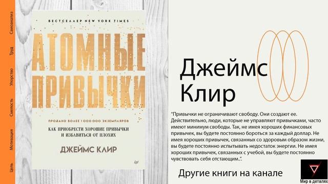 "Атомные привычки. Как приобрести хорошие привычки и избавиться от плохих" Джеймс Клир: Эта книга посвящена науке о том, как формируются привычки, и о том, как их можно изменить. Автор утверждает, что привычки состоят из трех компонентов: подсказка, желаемое действие и вознаграждение. В книге описаны 4 закона изменения привычек: Сделайте привычку очевидной - используйте визуальные подсказки и напоминания. Сделайте привычку привлекательной - свяжите ее с удовольствием и соответствием вашей идентичности. Сделайте привычку простой - уменьшите количество шагов и упростите процесс. Сделайте привычку удовлетворяющей - получайте немедленное вознаграждение после совершения действия. Книга содержит конкретные стратегии и методы по применению этих законов, такие как правило двух минут, наложение привычек, создание мотивирующего ритуала и многое другое. Автор убедительно показывает, что маленькие, едва заметные изменения могут привести к огромным результатам, если их накапливать. Книга наполнена примерами успешного применения описанных методик известными личностями и компаниями. Эта книга - отличное практическое руководство для тех, кто хочет внести положительные изменения в свои привычки и образ жизни. #аудиокнига #мотивация #успех #мышление #развитие