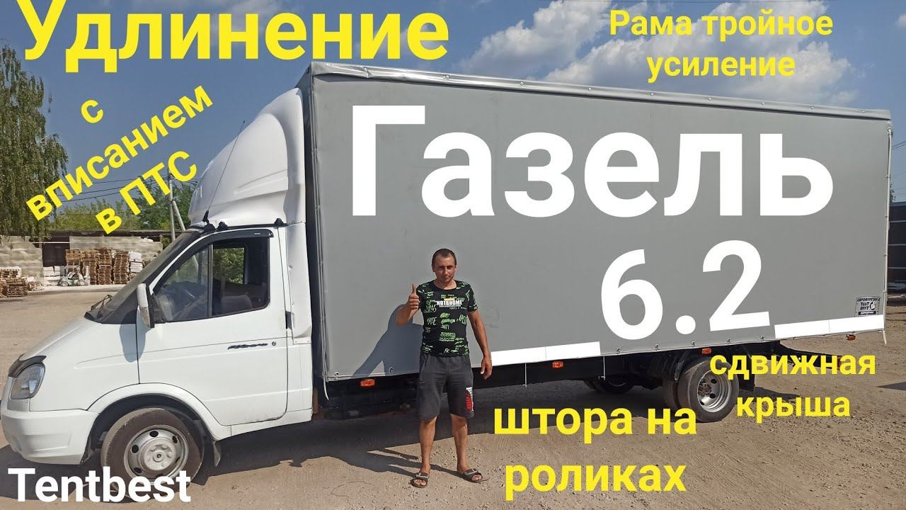 Газель 3302 удлинение до 6.2м. Сдвижная крыша, боковая штора.