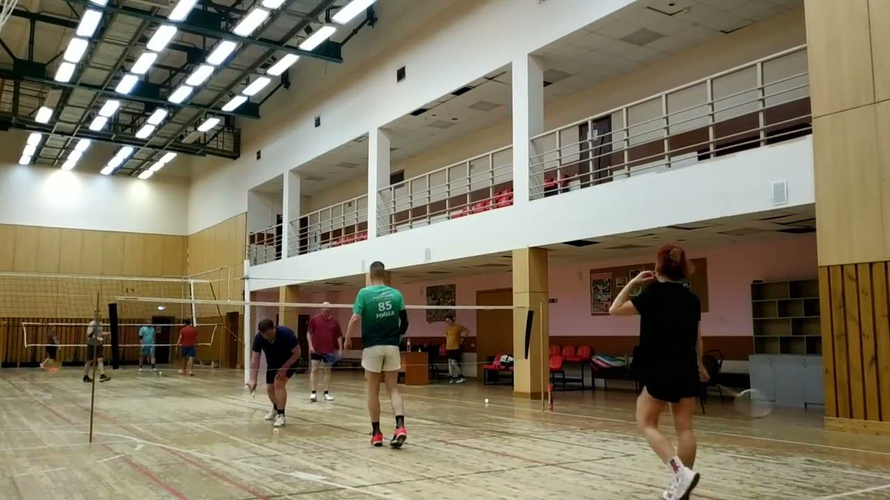 Тренировочная игра в бадминтон через сетку. Играют любители, новички и опытные бадминтонисты. Игра в Лестехе (МГУЛ ранее, сейчас называется филиалом Бауманки). Хочешь тоже играть? Приходи - https://badminton77.ru/map/4/ #badminton #badmintonlovers #badmintonrussia #lesteh #ЛесТех #бадминтон