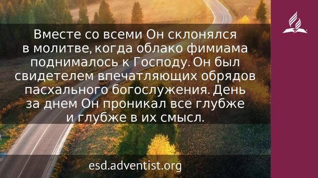 И когда Он был двенадцати лет, пришли они также по обычаю в Иерусалим на праздник (Лк. 2:42). После Пасхи наступал семидневный праздник Опресноков. На второй день праздника приносили пред Господом сноп ячменя и первые плоды урожая. Все обряды этого праздника символизировали служение Христа. Освобождение Израиля из Египта было наглядным уроком искупления, о котором и должна была напоминать Пасха. Закланный агнец, пресный хлеб, сноп первых плодов — все изображало Спасителя. Большинство людей, живших во дни Христа, соблюдали этот праздник в основном по традиции, формально. Но какое огромное значение он имел для Сына Божьего! Впервые отрок Иисус видел храм, видел священников в белых одеждах, совершающих торжественное служение. Он видел обескровленную жертву на алтаре. Вместе со всеми Он склонялся в молитве, когда облако фимиама поднималось к Господу. Он был свидетелем впечатляющих обрядов пасхального богослужения. День за днем Он проникал все глубже и глубже в их смысл. Каждое ритуальное действие виделось Ему связанным с Его Собственной жизнью. Новые устремления пробуждались в Его сердце. Молчаливый и сосредоточенный, Он, казалось, решал какую-то великую проблему. Ему открывалась тайна Его миссии. Поглощенный происходящим, Он отстал от Своих родителей: Ему хотелось побыть одному. Когда пасхальное служение закончилось, Иисус задержался во дворе храма; все паломники покинули Иерусалим, Он остался один. Когда родители Иисуса шли в Иерусалим, они хотели показать Его самым известным учителям Израиля. Хотя Он повиновался всякому слову Господа, Его не привлекали обычаи и обряды раввинов. Иосиф и Мария надеялись, что Он исполнится почтением к ученым раввинам и будет более прилежно исполнять их требования. Но в храме Господь Сам учил Иисуса, и всем, полученным от Бога, Он тотчас начал делиться… Если бы люди прислушались к истинам, на которые указывал юный Иисус! Тогда бы произошло пробуждение Израиля, проявился бы величайший интерес к духовному, и когда Иисус начал бы Свое служение, многие были бы готовы принять Его (Желание веков. С. 77–79). https://esd.adventist.org/library/periodicals/ezhednevnyie-chteniya/ #адвентисты #АдвентистыСедьмогоДня #Церковь #ЦерковьАдвентистовСедьмогоДня #ЦерковьХристианАдвентистовСедьмогоДня