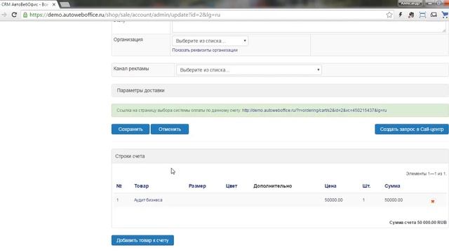 5. Продажи через интернет - Ручное выставление счетов в CRM АвтоВебОфис