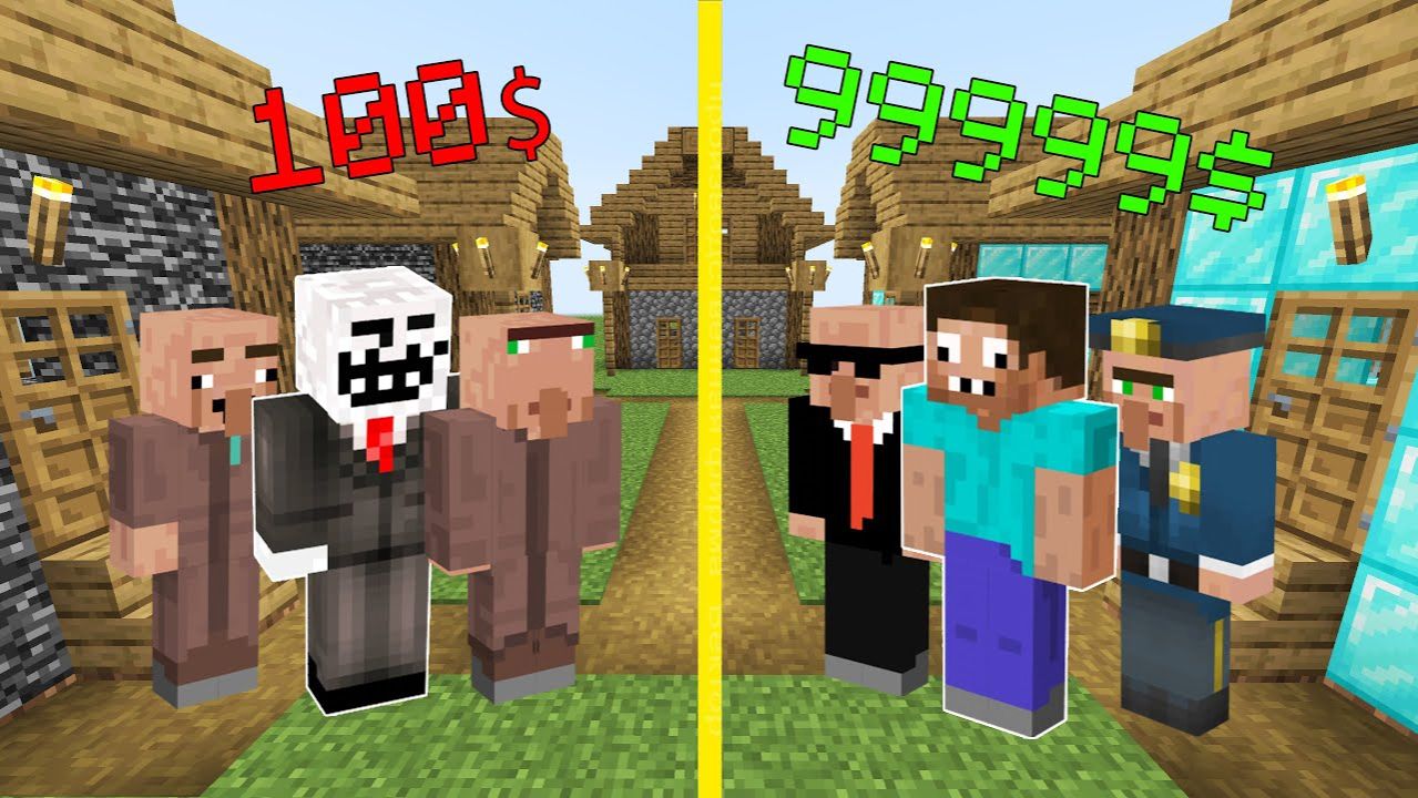 ЖИТЕЛИ ЗА 100$ ПРОТИВ ЖИТЕЛИ ЗА 999999$ В МАЙНКРАФТ ОРЕЛ И РЕШКА ! ПРО И ЧИТЕР И ТРОЛЛИНГ ЛОВУШКА