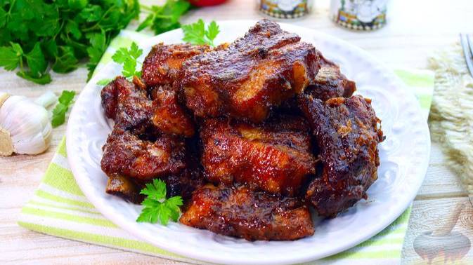 Сочные внутри и с хрустящей корочкой снаружи. ЗАПЕЧЁННЫЕ СВИНЫЕ РЁБРЫШКИ В ТОМАТНОМ МАРИНАДЕ