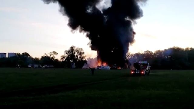 Место крушения самолёта Ил-76 ВКС России под Рязанью. По предварительным данным погибло трое человек, ещё шесть получили ранения.