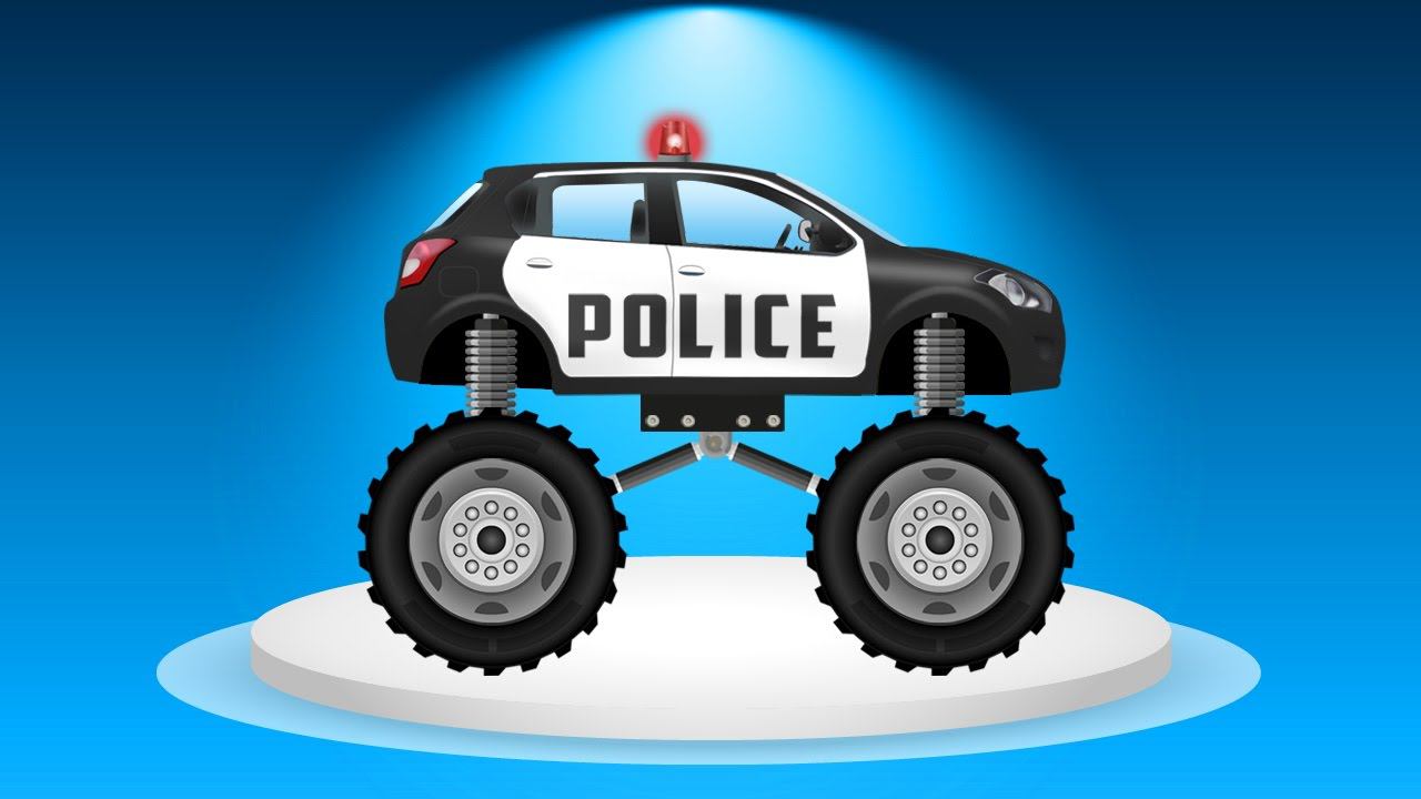 Мультики про Полицейские машины Монстр Трак Погоня за нарушителем