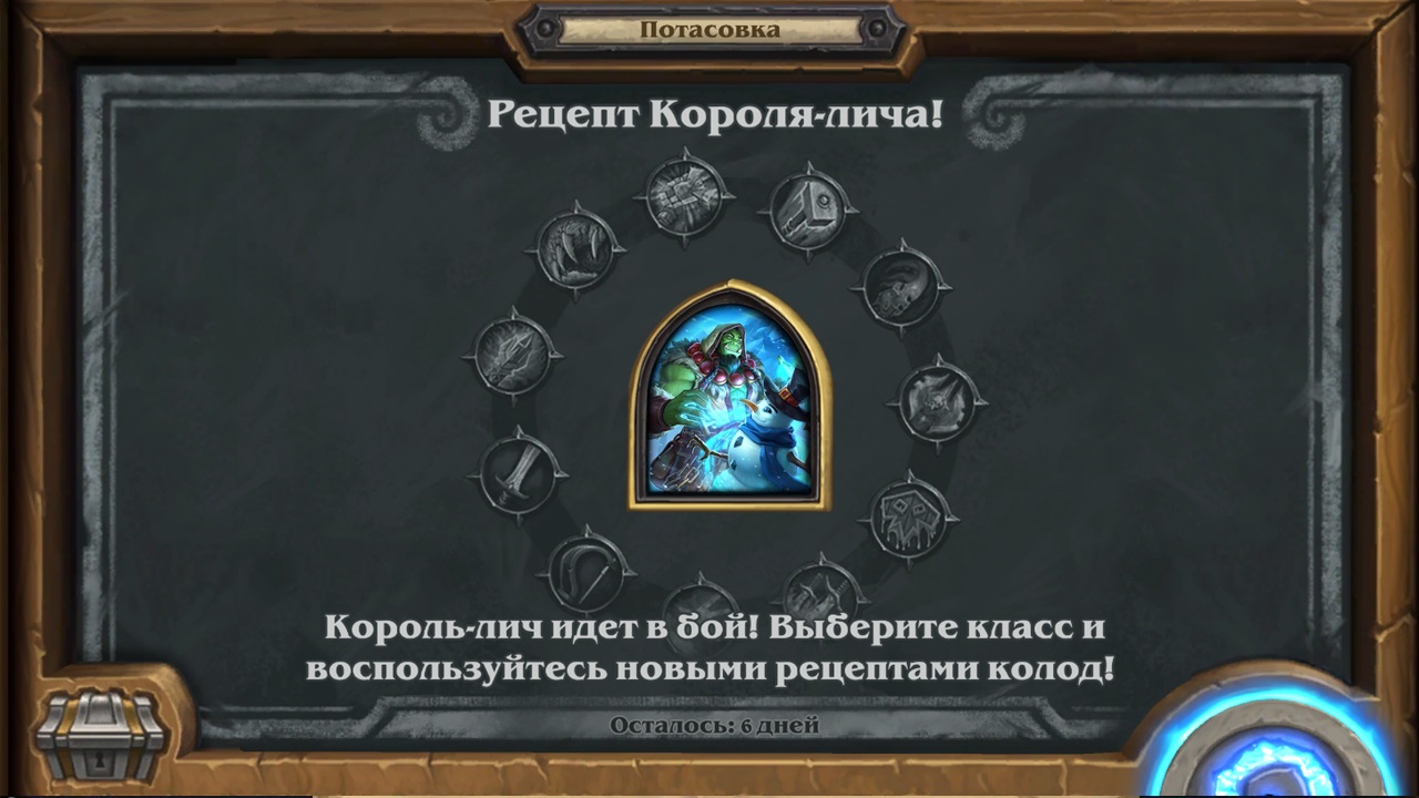 Потасовка в Hearthstone, в период с 07.12.2022 - 14.12.2022 Потасовка: Рецепт Короля-лича! Король-лич идет в бой! Выберите класс и воспользуйтесь новыми рецептами колод!