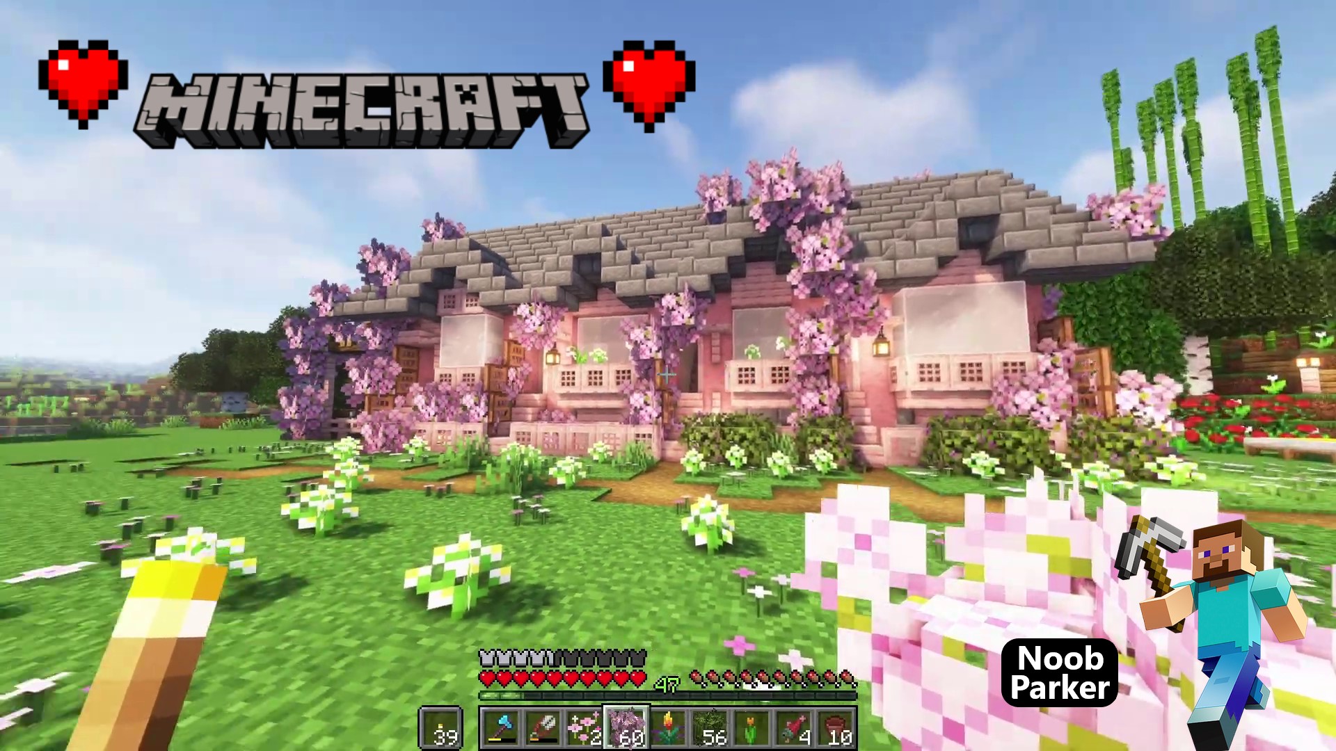 Майнкрафт, расслабляющий геймплей, Уютные коттеджи в цветущей сакуре под дождем, minecraft.