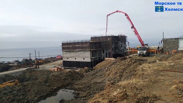 Процесс строительства домов на улице Некрасова города Холмск 19 апреля 2023 года