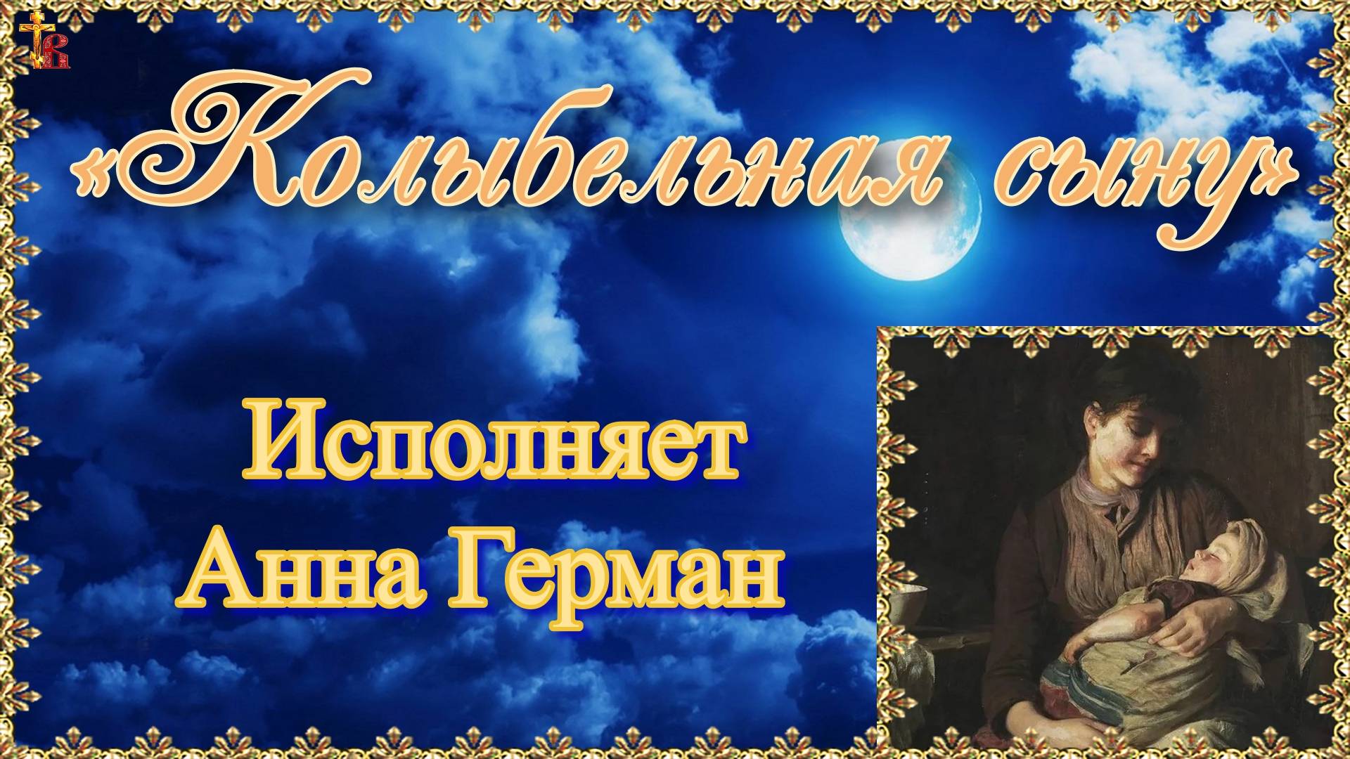 «Колыбельная сыну». Исполняет Анна Герман. Месяц над нашею крышею светит, Вечер стоит у двора. Маленьким птичкам И маленьким детям Спать наступила пора. Завтра проснешься — и ясное солнце Снова взойдет над тобой… Спи, мой воробушек, Спи, мой сыночек, Спи, мой звоночек родной. Спи, моя крошка, Мой птенчик пригожий, Баюшки-баю-баю. Пусть никакая печаль не тревожит Детскую душу твою. Ты не увидишь ни горя, ни муки, Доли не встретишь лихой… Спи, мой воробушек, Спи, мой сыночек, Спи, мой звоночек родной. Спи, мой малыш, Вырастай на просторе, Быстро промчатся года, Смелым орленком на ясные зори Ты улетишь из гнезда. Ясное небо, высокое солнце Будут всегда над тобой. Спи, мой воробышек, Спи, мой сыночек, Спи, мой звоночек родной. Источник: https://azbyka.ru/deti/koly-belny-e-pesni-dlya-maly-shej