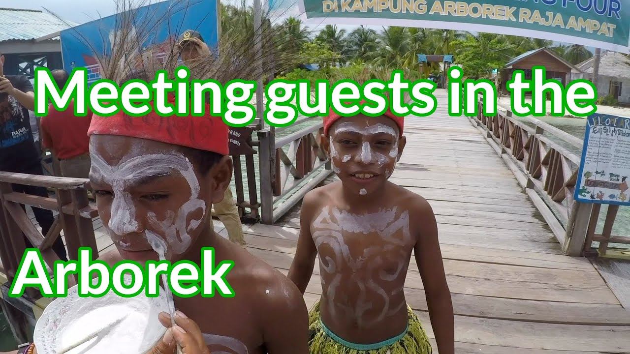 Meeting guests in the kampung Arborek