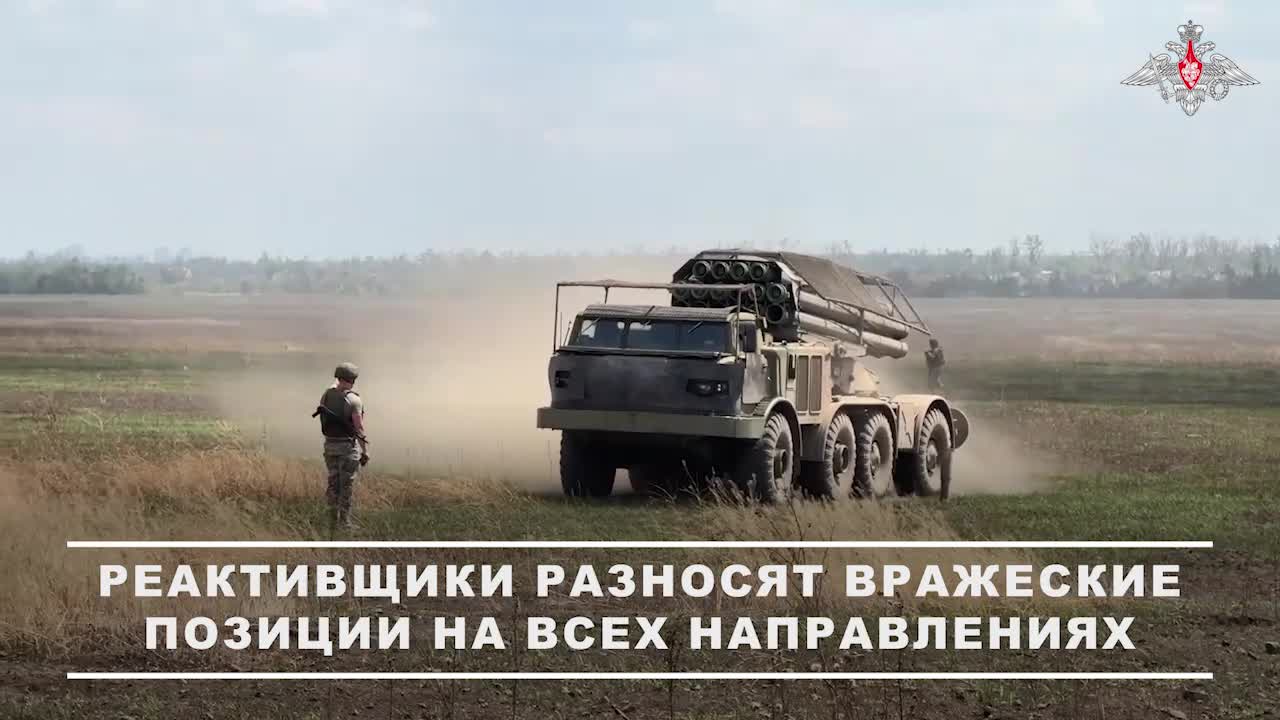 ⚔️ Артиллеристы продолжают наносить мощные удары по вражеским позициям. 00:00 Расчёты РСЗО «Ураган» артиллерийского соединения 8-й общевойсковой армии группировки войск «Центр» ударили по укрепрайону ВСУ под Красноармейском, тем самым разрушив инженерные сооружения и уничтожив технику и личный состав противника. 00:27 Расчёты РСЗО «Град» группировки войск «Восток» уничтожили порядка десяти боевиков, сорвали ротацию личного состава ВСУ и остановили их подвоз боеприпасов в районе населённого пункта Подгавриловка в Днепропетровской области. 00:55 Расчёты РСЗО «Град» 44-го армейского корпуса группировки войск «Север» уничтожили позиции с живой силой, бронетехнику и пункты управления беспилотниками ВСУ на Харьковском направлении. 🔹 Подписаться на канал 🔹 Мы в МАХ