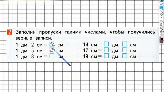 Другие решения смотри тут: https://urokitv.net/29-gdz-po-matematike-1-klass-dorofeev-g-v Urokitv.net это школьные учебники и решебники с 1-го по 11-й класс школы. Ждем ваших предложений и пожеланий. Если вам нравится, то что мы делаем расскажите про нас своим друзьям и одноклассникам. Выполняя задание №1 на странице 66 вам нужно знать таблицы единиц длины, а также, в данных записях заполнять пропуски. Посмотрев наше видео, за 1 минуту можно выполнить данное задание. Страница 66 Задание №1 - ГДЗ по математике 1 класс (Дорофеев Г.В.) Часть 2