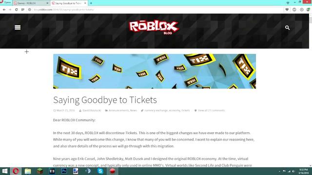 Roblox Removing Tickets Forever?