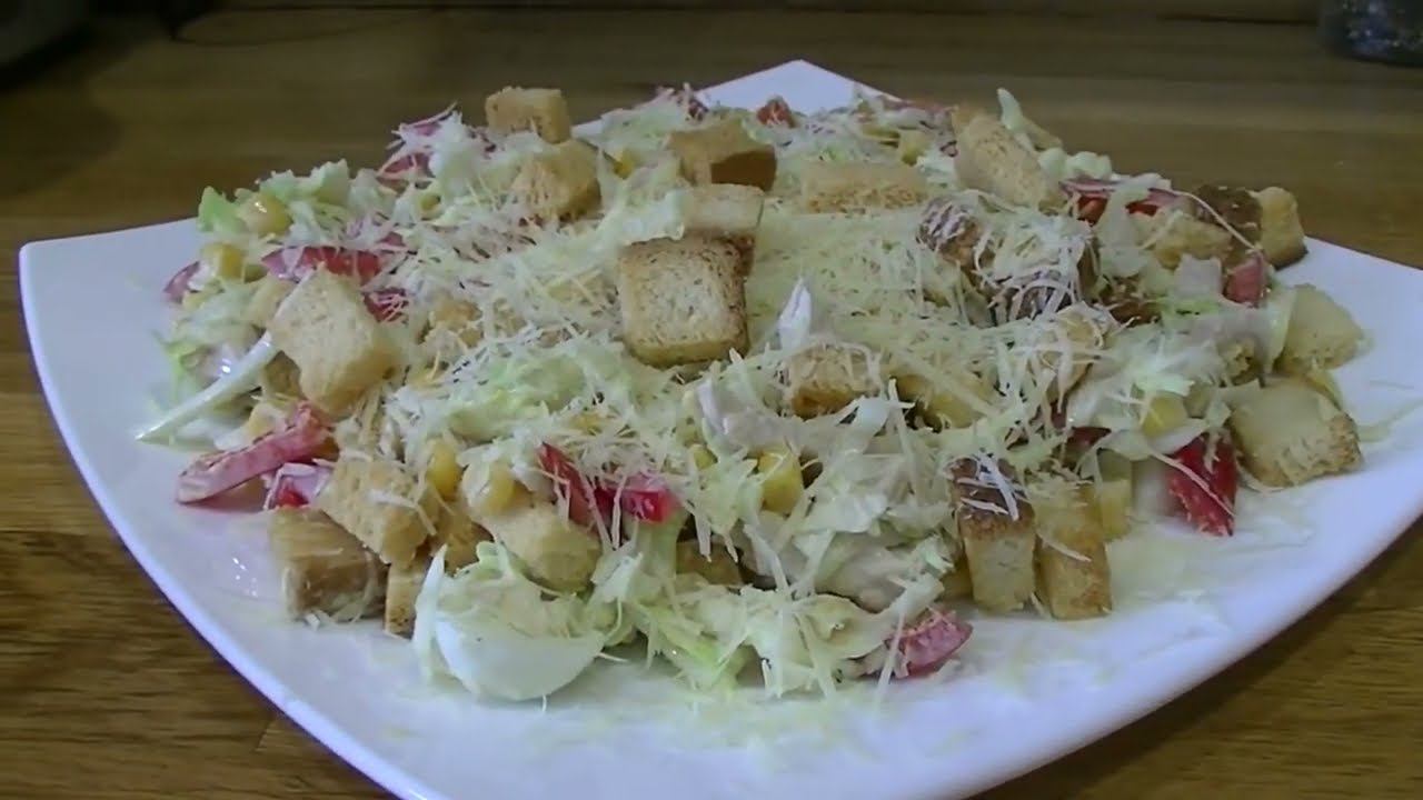Очень вкусный салат с молодой капустой и сухариками