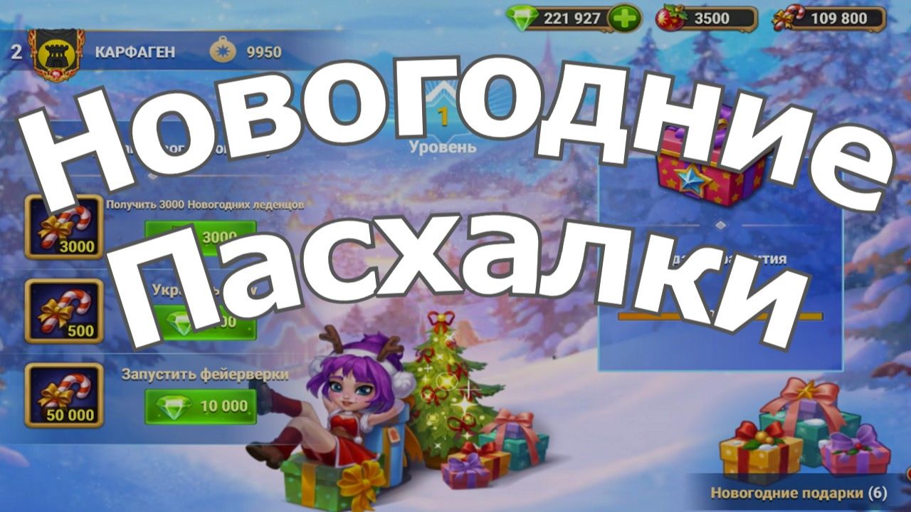 https://herowars.me/AleksandrLarin Играть в Хроники Хаоса https://rutube.ru/video/ee53307d72e6091586979b3109eff6a8/ Активирую Генераторы ресурсов Хроники Хаоса Эра Доминиона С Новогодних Пасхалок поступающие ресурсы не особо большие, но лишними не будут, можно собрать пасхалки. К тому же интересно )) Пасхалка 1 Сбор новогодней пасхалки в игре Хроники Хаоса: 1 при салюте нажать на колокольчики 2 в 1 главе кампании подарок под елкой 3 в 2 главе кампании подарок среди деревьев 4 в 12 главе кампании нажать на грот рядом с иконкой Ларса и сыграть в мини игру. Когда засветятся все буквы и цифры над елкой нажать на надпись и получить приз пасхлку. Если перезагрузили игру, не до собрав пасхалку, то все элементы пасхалки собирать заново. Пасхалка 2 На нажать на красный шарик висящий на магазине. Откроются окно сбора пазлов, собрать 4 пазла. Добра, удачи в делах, хорошего настроения и приятного просмотра. Можете оценить видео лайком (дизлайком) и высказывать ваше мнение в комментариях. Много интересной и полезной информации на канале Хроники Хаоса Александр Ларин Hero-Wars