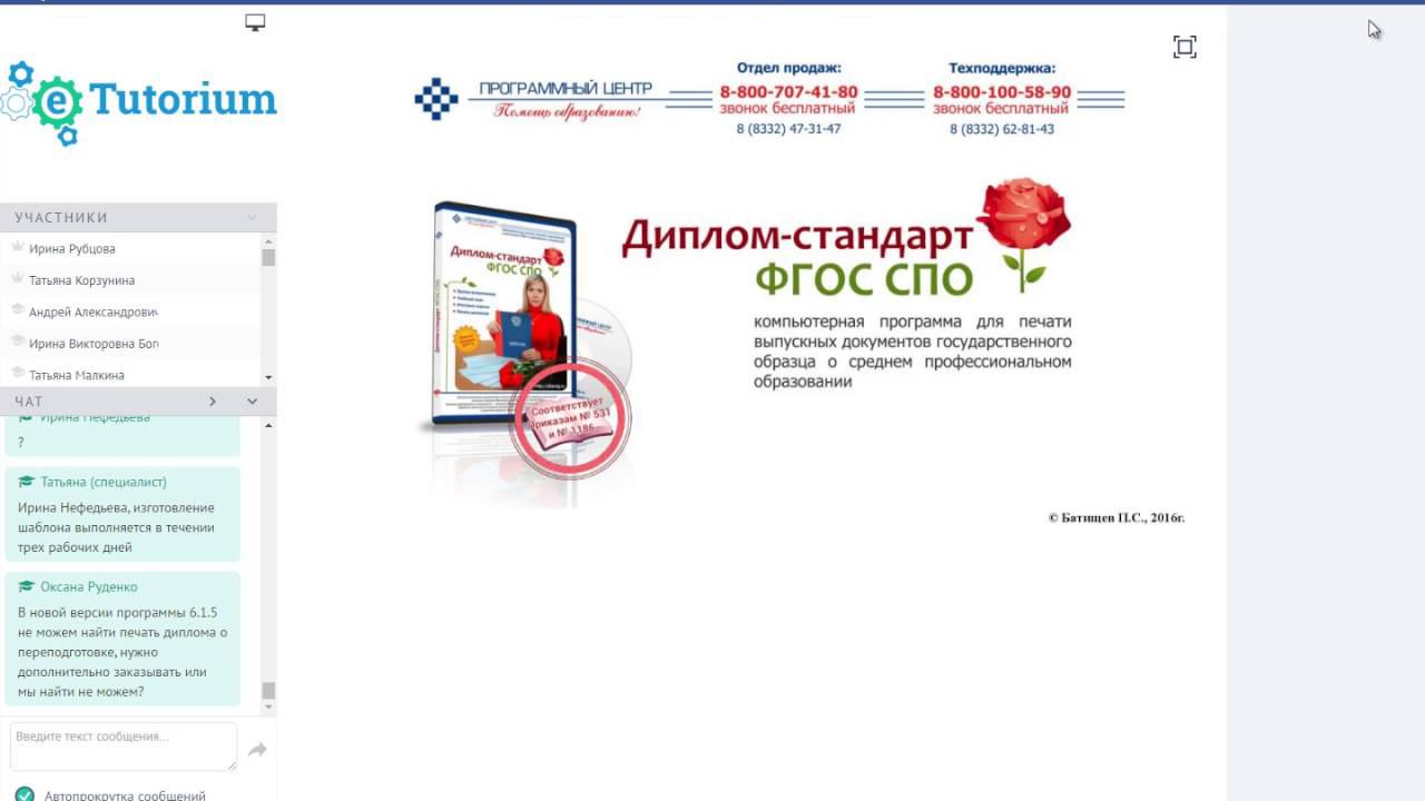 Вебинар для директоров, завучей и секретарей учебной части образовательных организаций среднего профессионального образования от Программного центра "Помощь образованию". Тема: Печать дипломов (выпускных документов государственного образца) о среднем профессиональном образовании в программе "Диплом-стандарт ФГОС СПО" Дата: 19 мая 2016