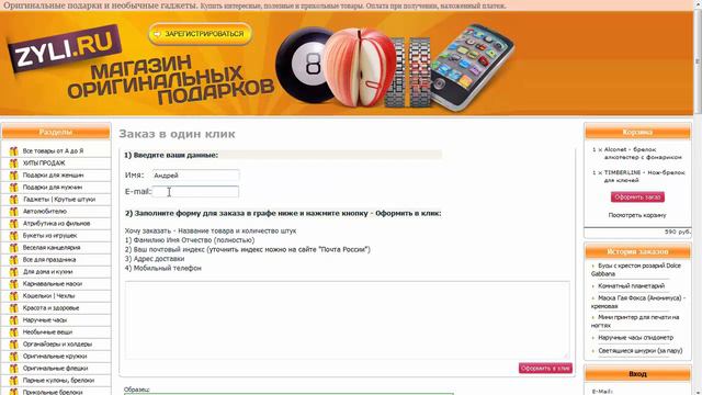 Инструкция по оформлению заказа в 1 клик