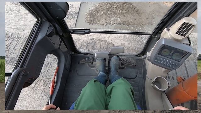 Excavator work Bahasa Indonesia Bergerak dengan pedal Hitachi Zaxis 120 パワーショベル運転席の操作映像
