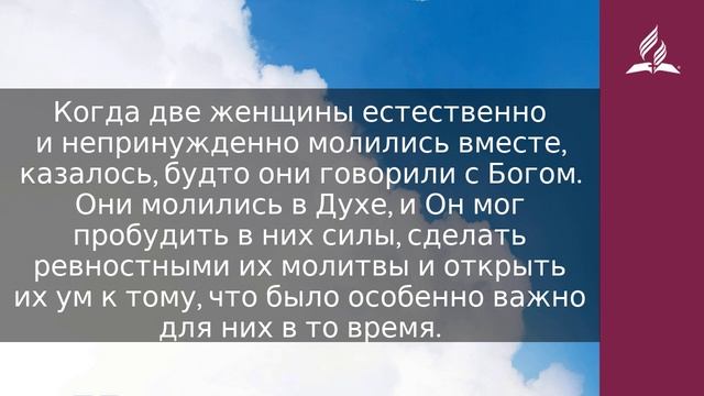 А вы, возлюбленные, назидая себя на святейшей вере вашей, молясь Духом Святым… (Иуд. 20). Когда Розалинде Ринкер было пятнадцать лет, она как-то предпочла пойти на домашнее молитвенное собрание, а не на вечеринку с друзьями. На этом молитвенном собрании она узнала, что значит разговаривать в силе Духа с Богом как с Другом. Спустя годы, будучи миссионеркой в Китае, Розалинда вместе с другой женщиной молились о нескольких студентах, и тогда ими был открыт принцип молитвы, который помог миллионам христиан. Розалинда молилась: «Господи, хочешь ли Ты научить нас чему-то этой ситуацией? Не должны ли мы, молясь, быть более открытыми для Твоих наставлений? Не даст ли наша молитва больше возможности Святому Духу руководить нами?» (Prayer: Conversing With God, p. 17). Когда две женщины естественно и непринужденно молились вместе, казалось, будто они говорили с Богом. Они молились в Духе, и Он мог пробудить в них силы, сделать ревностными их молитвы и открыть их ум к тому, что было особенно важно для них в то время. «Знаешь что? — воскликнула Розалинда, обращаясь к своей подруге Милдред. — Я верю, что Господь прямо сейчас чему-то научил нас! Вместо того чтобы делать молитву лишь обращением к Нему, давай разговаривать с Ним снова и снова, включая в разговор и Его, как мы делаем, когда общаемся друг с другом». Милдред согласилась: «Да, и мы можем молиться о какой-либо личности или ситуации, снова и снова вспоминая о них, пока не почувствуем, что мы соприкоснулись с Богом и что наши сердца успокоились» (там же, с. 14). Сегодня по всему миру в небольших группах люди наслаждаются удивительными благословениями молитвы — беседы с Богом. Обычно члены группы начинают со славословия. Затем они молятся о нуждах присутствующих, служа друг другу посредством силы и даров Святого Духа. Наконец, их молитвы выходят за пределы группы, когда они ходатайствуют о других людях и ситуациях. Каждая молитва состоит не больше чем из одного-двух предложений, чтобы каждый в группе мог помолиться столько раз, сколько побуждает его Дух. МОЛИТВА Отец Небесный, благодарю за то, что Ты слышишь и отвечаешь, когда я говорю и общаюсь с группой молящихся друзей. https://esd.adventist.org/library/periodicals/ezhednevnyie-chteniya/ #адвентисты #АдвентистыСедьмогоДня #Церковь #ЦерковьАдвентистовСедьмогоДня #ЦерковьХристианАдвентистовСедьмогоДня