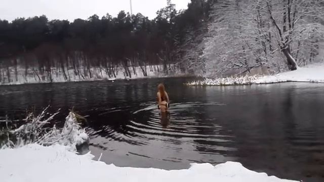 Купальщица в зимнем водоеме.