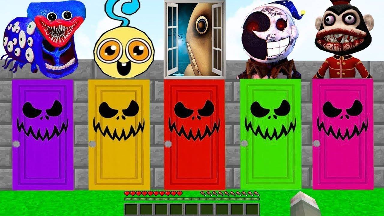 ВЫБЕРИ ПРАВИЛЬНУЮ ДВЕРЬ РЕБЕНОК ДЛИННЫЕ НОГИ ЧЕЛОВЕК ЗА ОКНОМ ПОВАР ОБЕЗЬЯНА ХАГГИ ВАГГИ В МАЙНКРАФТ
