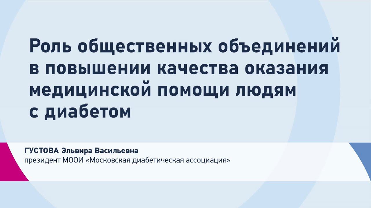 10.11.2020 Всемирный день борьбы с диабетом 2020 Онлайн-проект «СОВРЕМЕННЫЕ ПОДХОДЫ В ЛЕЧЕНИИ И ПРОФИЛАКТИКЕ САХАРНОГО ДИАБЕТА» О роли пациентских сообществ в защите прав пациентов с сахарным диабетом, основных направлениях деятельности, результатах работы МООИ "Московская диабетическая ассоциация рассказывает ее президент Э.В. ГУСТОВА. Информационно-выставочное агентство «ИнфоМедФарм Диалог»: http://imfd.ru/ https://vk.com/imfd_dialog https://www.instagram.com/infomedfarm...