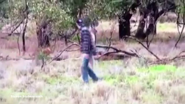 мужик дал в морду кенгуру,чтобы спасти собаку