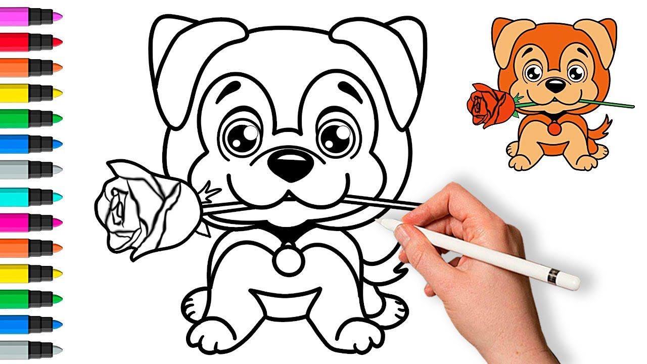 Милый щенок с цветком Шаг за шагом 🐶 🌹 / Рисование и раскраска для детей